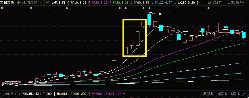 你比如说去年3月份的复旦复华就是个典型,连续四个一字板,第五天开板换手,第六天龙虎版显示“赵老哥”买入。他进去做加速,可以理解添了一把柴,其实前面一天难度很大,之前已经是在高位爆量的烂板,很有可能第二天会直接跌停的,第二天开得又很低。在一个很低的位置把它做到涨停板,实际上这中间有十几个点的跨度,又是这么大的市值,比较困难。但是他非常喜欢去做这种加速,这种操作在K线上一般不能出现阴线,必须一鼓作气,不能有任何调整,因为他们非常了解散户,一旦四五个没有经过换手的涨停板打上去,只要一出现阴线,有示弱的表现,散户就会把筹码抛出去。