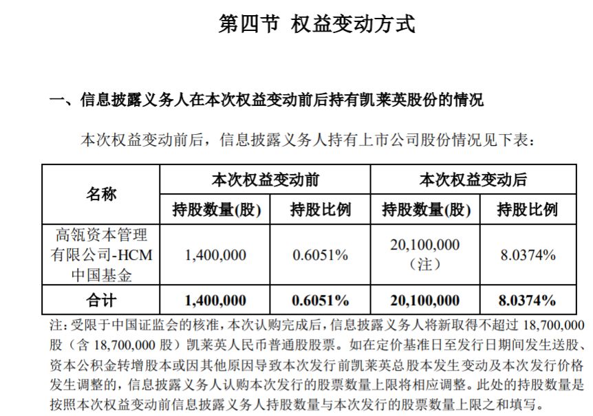 凯莱英在昨天发布修改后的融资预案后,2月17日晚间,火速发布权益变动报告书,高瓴资本成为其持股8%的股东。