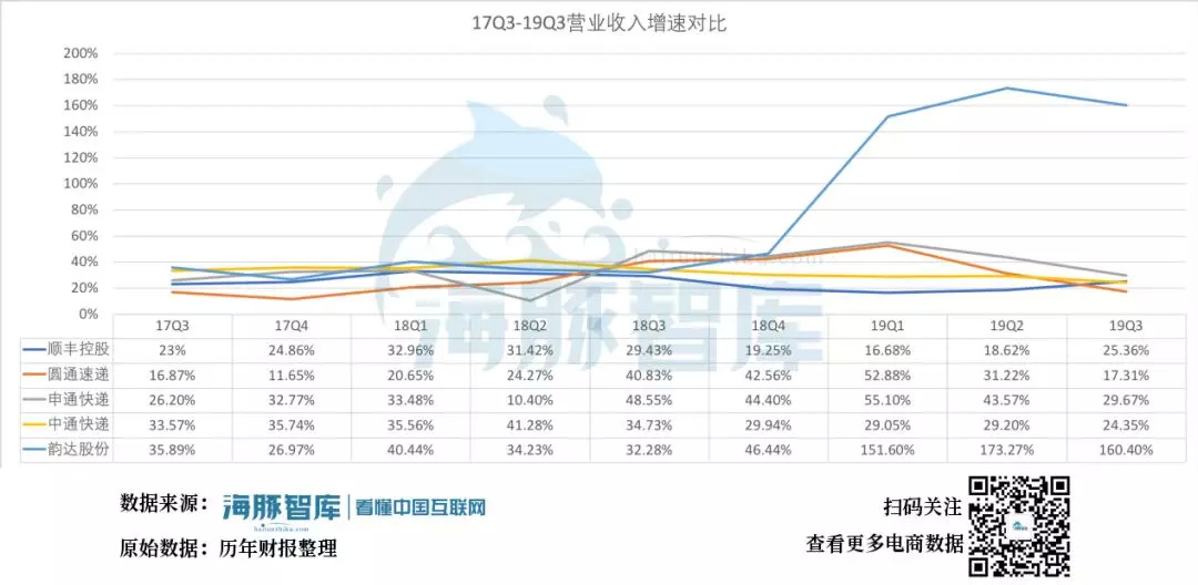 17Q3-19Q3营业收入增速对比,历年财报整理 海豚智库整理
