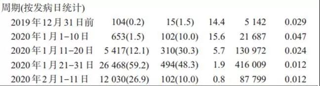 这篇论文最大的一个亮点,是通过对72314名病例中的44672个确诊病例进行发病日期回溯性,将此次新型冠状病毒疫情的爆发,分为了5个不同的时段,分别为2019年12月31日之前、2020年1月1日至10日、1月11日至20日、1月21日至31日、以及2月1日至11日。