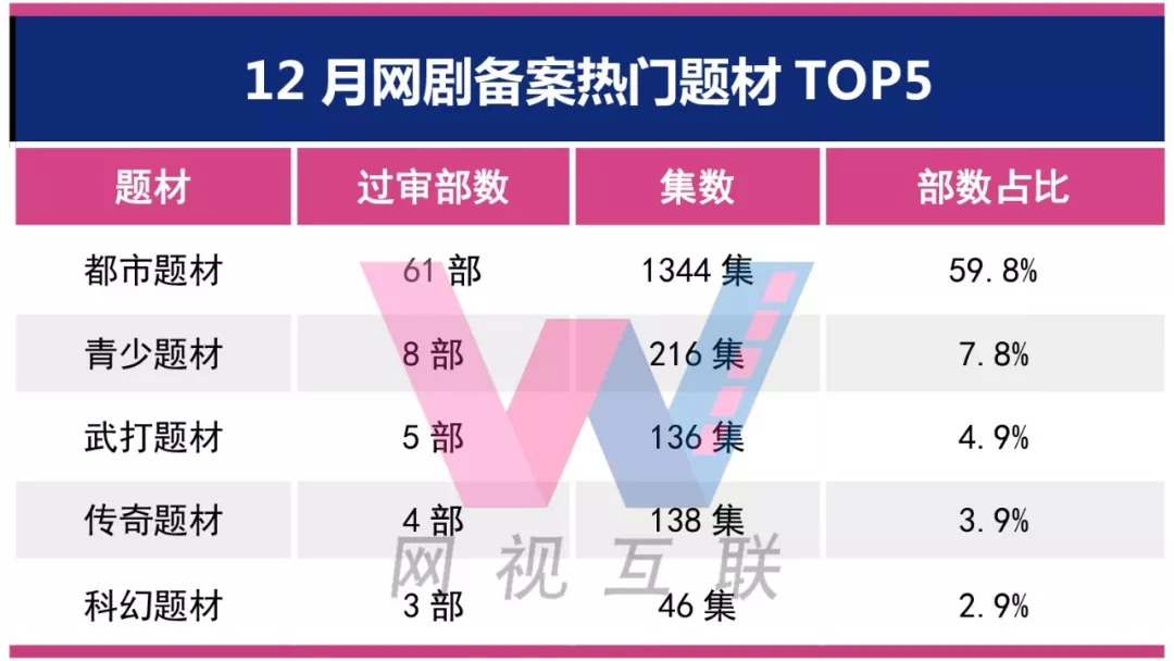 在102部通过规划备案的网络剧中,都市题材高达61部,59.8%,数量上遥遥领先。