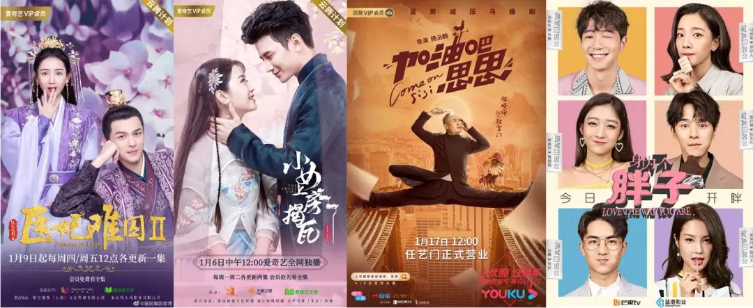 《医妃难囚第二季》《小女上房揭瓦》均为爱奇艺文学云腾计划网剧,根据爱奇艺文学同名小说改编,爱奇艺文学为出品公司之一。《加油吧思思》由优酷和阿里巴巴影业集团出品,同样为平台自制。《身为一个胖子》由蓝港影业有限公司和芒果TV联合出品。