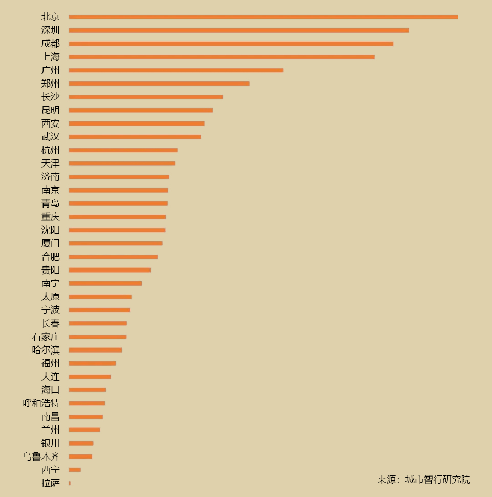 具体到城市,全国36个中心城市均属于典型的客流输入型城市,其中武汉市的返程客流规模需求也非常大,在36个城市中排名第十。