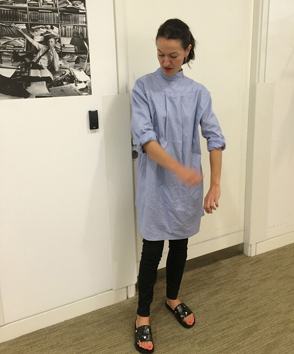 时尚编辑Cochrane为此专门做了亲测,反穿衬衫去上班。她这样描述自己的经历:“我的朋友善意地问我说,你知道你的衬衫穿反了吗?”以及被调侃为“Margaret Howell(衬衣品牌及设计师)在做脑部手术。”除了闲侃的议论,Cochrane自身也感到局促:“可以感受到物理上的不舒适——脖子一直被卡着,全身难以放松。”