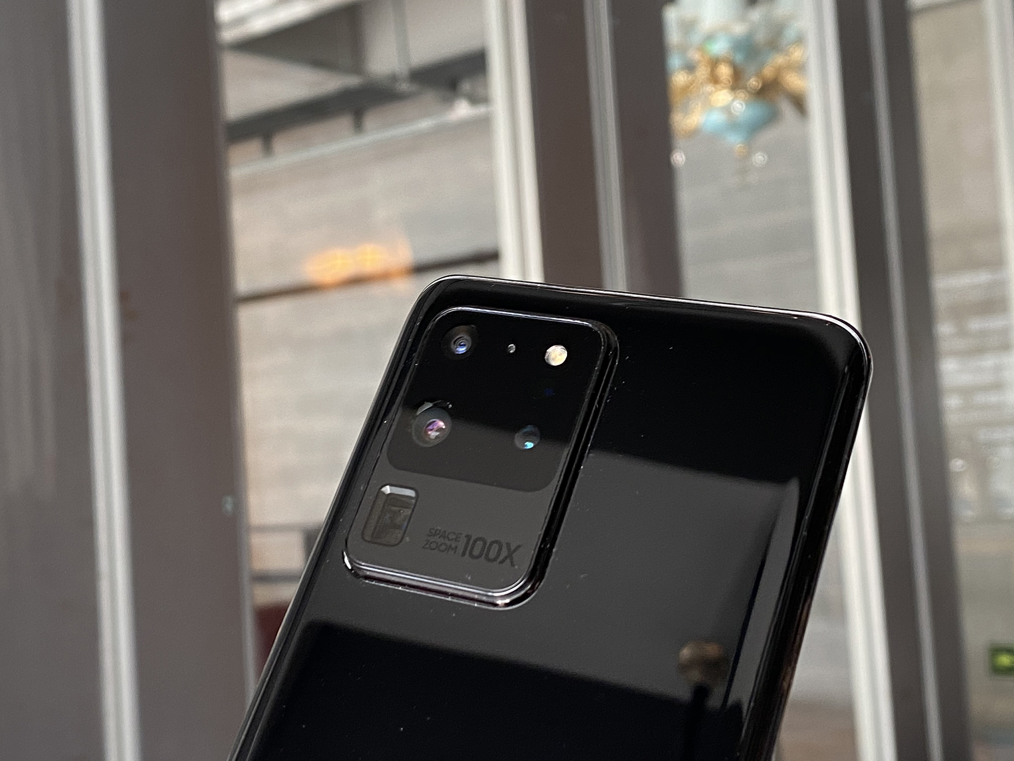 S20 Ultra配备矩阵式后置四摄,其中主摄1.08亿像素,0.8微米像素尺寸,支持九像素合一等效于1200万像素输出,79度广角,F1.8固定光圈,OIS光学防抖,支持空前的100倍变焦,视频录制则支持8K30、4K60、1080p240、720p960。