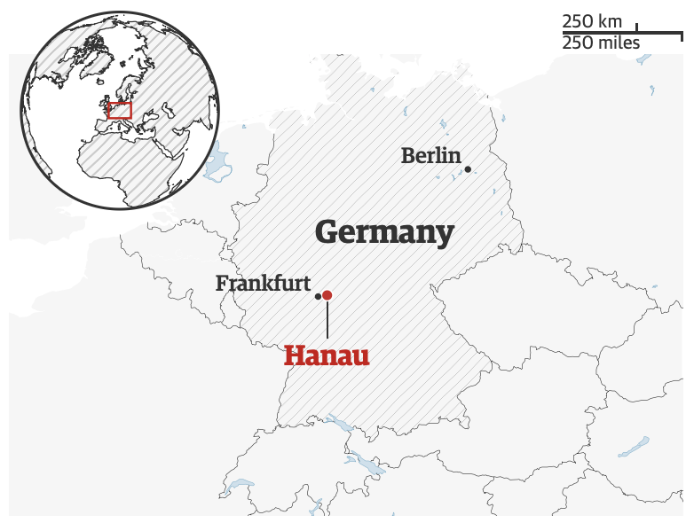 据德国警方2月20日消息,19日晚上10点左右,该国西南部城市哈瑙(距离法兰克福约20公里,常驻人口约10万人)突发枪击案,已造成八人死伤多人受伤。
