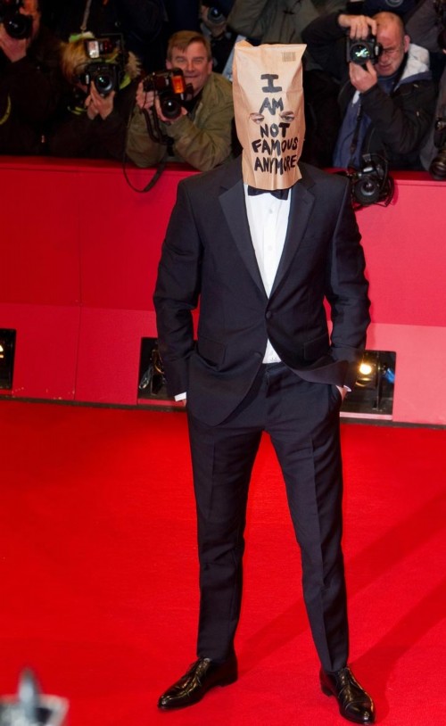 2014年的柏林电影节,惊世骇俗的《女性瘾者》首映红毯上,导演拉斯·冯·提尔因为言论不当被禁止参加了,主演希亚·拉博夫就想了这样一个办法。