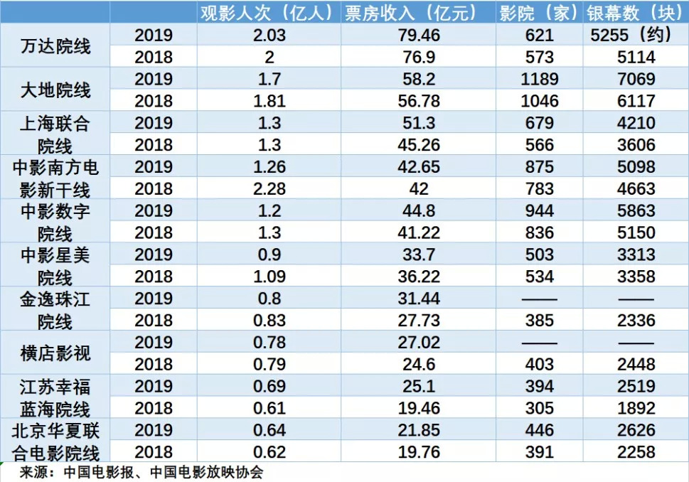 各院线经营情况及投资计划看,行业在向质量和结构方向调整,但并未到总量瓶颈节点。2019年末全国50条院线,新增2条,此前3年一直保持在48条。
