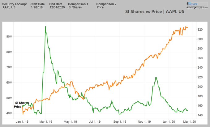 《科创板日报》20日讯,根据金融分析机构S3 Partner数据,截至2月18日,苹果公司未平仓空头为4192万股,占流通股的0.96%。过去30天,未平仓空头增加97万或2.4%,期间股价上涨1.95%。过去一周,未平仓空头仓位减少111万股或2.6%。今年至今,苹果空头亏损超过10亿美元。