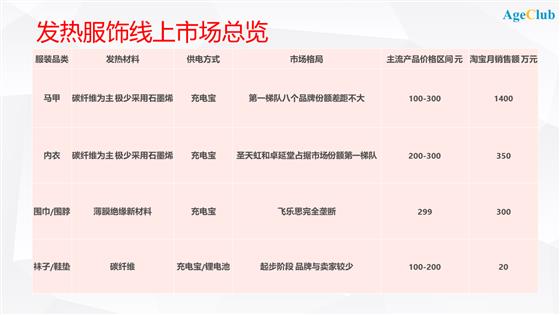 2020年1月正值隆冬,AgeClub分析了20000多条电商消费数据,涵盖“电热”关键词的内衣、马甲、鞋袜、围巾、护膝等多个服装品类,还原目前国内电热服饰的市场生态: