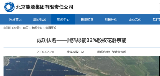 国际能源网/光伏头条从京能集团的官网上了解到,2月18日,京能集团通过境外投融资平台公司——京能香港,成功认购熊猫绿色能源集团有限公司增发的71.77亿股份,持股32%成为熊猫绿能第一大股东。