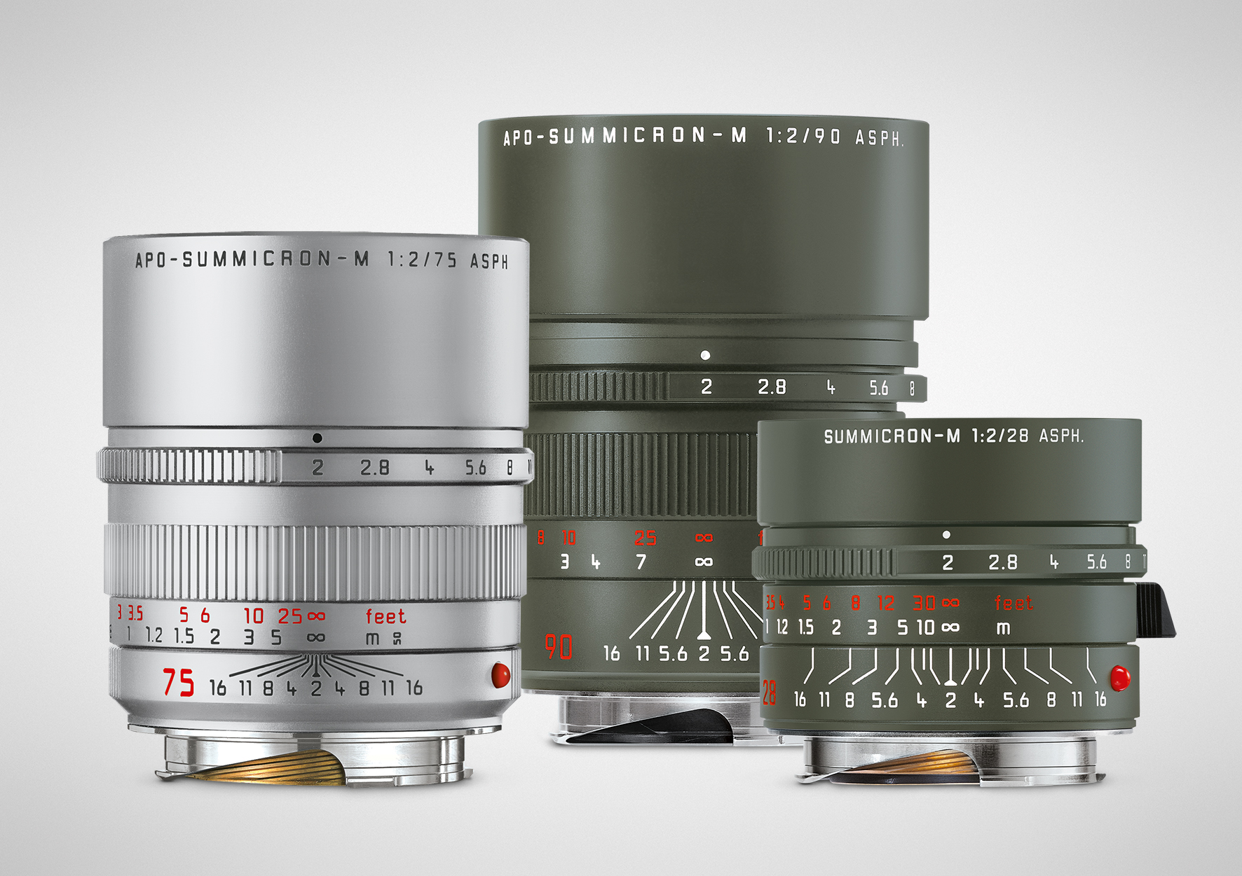 此外,徕卡还推出了限量特别版Summicron-M 28 f/2 ASPH. 和 APO-Summicron-M 90 f/2 ASPH. 镜头,均使用橄榄绿色漆层。两款“Safari”版本的镜头都带有红色的距离标尺和红色的焦距刻度,其他所有刻字采用白色,与镜身的橄榄绿色相得益彰。除了2019年发布的徕卡Summicron-M 50 f/2镜头,新款 Summicron-M 28 f/2 ASPH. 和 APO-Summicron-M 90 f/2 ASPH. 镜头是极少数可以完美匹配橄榄绿的徕卡M10-P “Safari”特别版机身的M镜头,也令该特别系列更具吸引力。Summicron-M 28 f/2 ASPH. “Safari”版镜头限量生产500只,APO-Summicron-M 90 f/2 ASPH. “Safari”版镜头限量250只。
