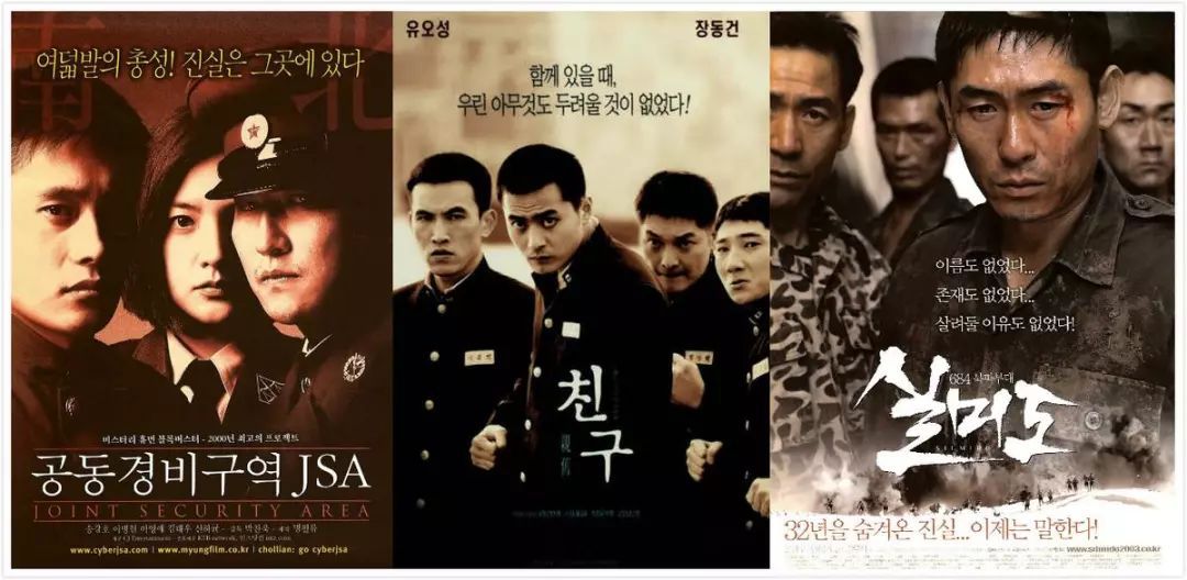1999年,《生死谍变》将好莱坞式类型片进行本土化落地,其票房甚至超过了同期在韩国上映的《泰坦尼克号》。2000年,首部正面表现南北方军队士兵友谊的《共同戒备区》又一次缔造票房奇迹。被称为韩国版《美国往事》的电影《朋友》、《实尾岛》以及《太极旗飘扬》等也都是在这一时期诞生的大片,其不俗成绩将韩国国产电影的市场占有率提升至50%。