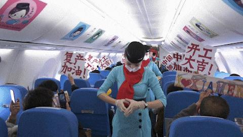 厦航特地为从贵阳起飞的MF8438包机策划了“共抗疫情,一‘鹭’护航”的主题航班,客舱里装饰的是乘务员手绘的防疫主题卡通贴图,乘务员们还为旅客们带来名为《你的答案》的手语舞表演,为大家加油鼓劲。每位旅客还收到了一本厦航人自己精心手绘的防疫小贴士——《返岗复工指南》