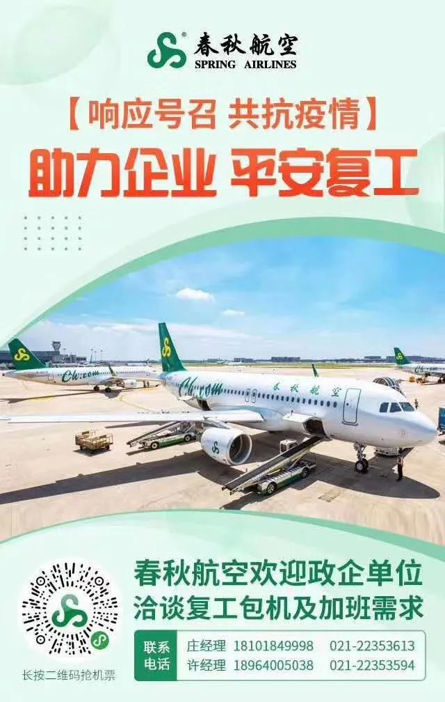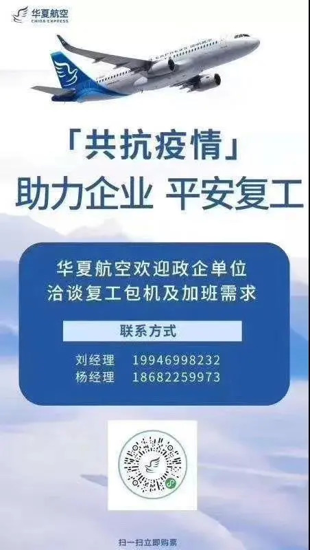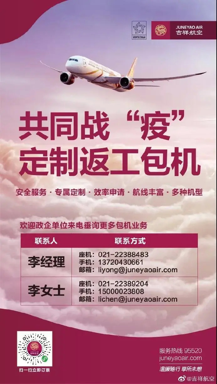 目前,各航空公司根据地方政府或企业的需求,正积极组织运力,优先保障复工复产人员出行。