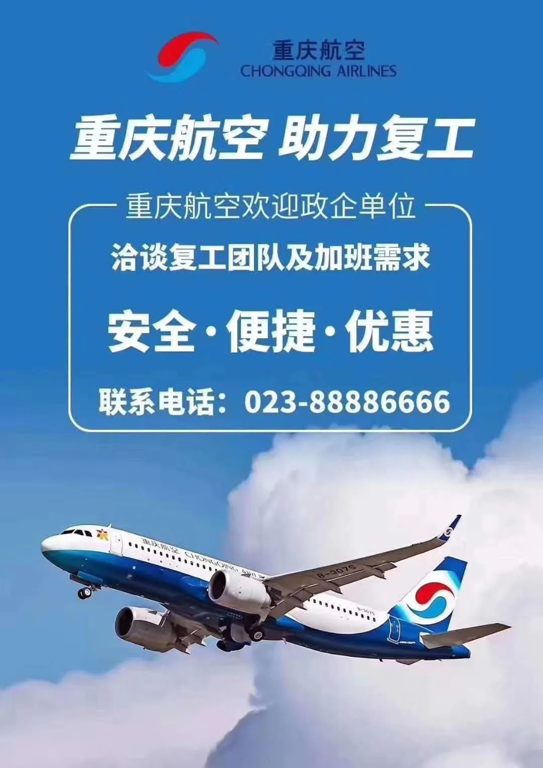 2月21日下午15:07,重庆航空OQ2355航班从重庆江北国际机场顺利起飞,这是疫情期间,重庆首个复工复产包机。