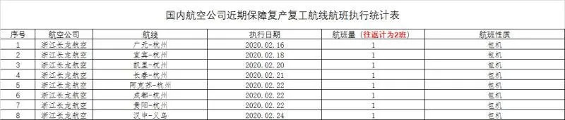 据初步统计,截至目前,各航空公司在现有定期航班的基础上,专门执行复工复产航班42班(往返计为2班)。从出行方向看,主要为保障西南、西北、东北地区的务工人员前往华东地区。