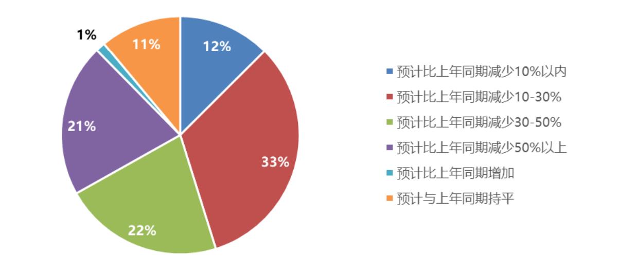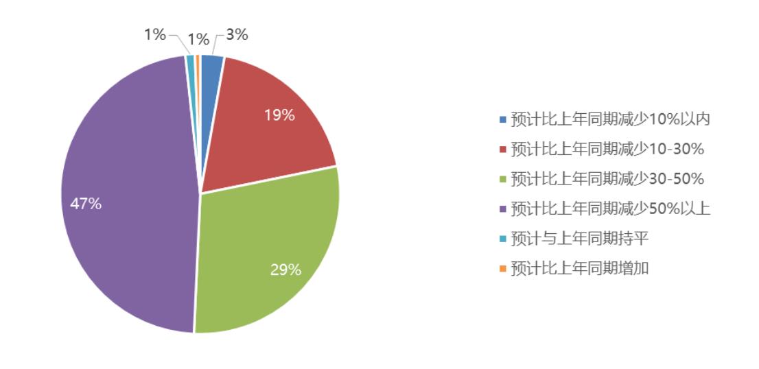 多重因素导致多数培训机构预计上半年营收将大幅下降。47%的机构预计,2020年上半年的营收同比减少50%以上,29%的机构预计同比减少30%-50%。35.42%的在线教育机构预计收入同比缩水一半以上。