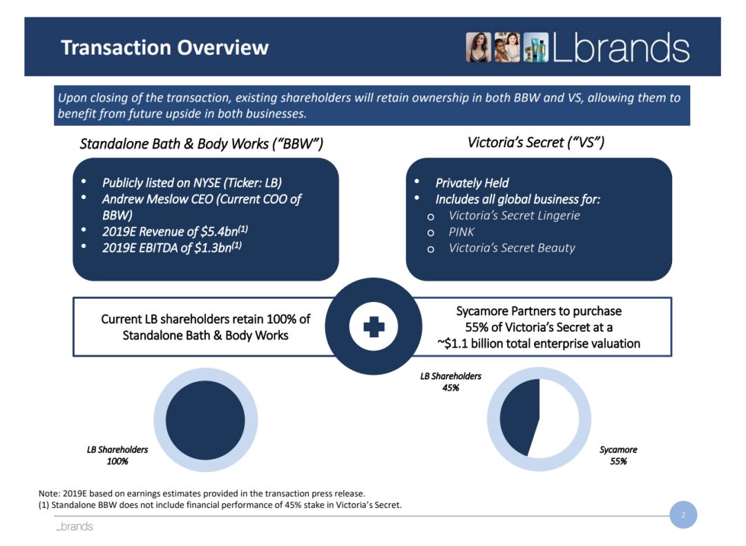 也就是,Sycamore将以约5.25亿美元获得维秘55%的股权,成为维秘的控股股东,而剩余的45%则仍将掌握在L Brands手中。