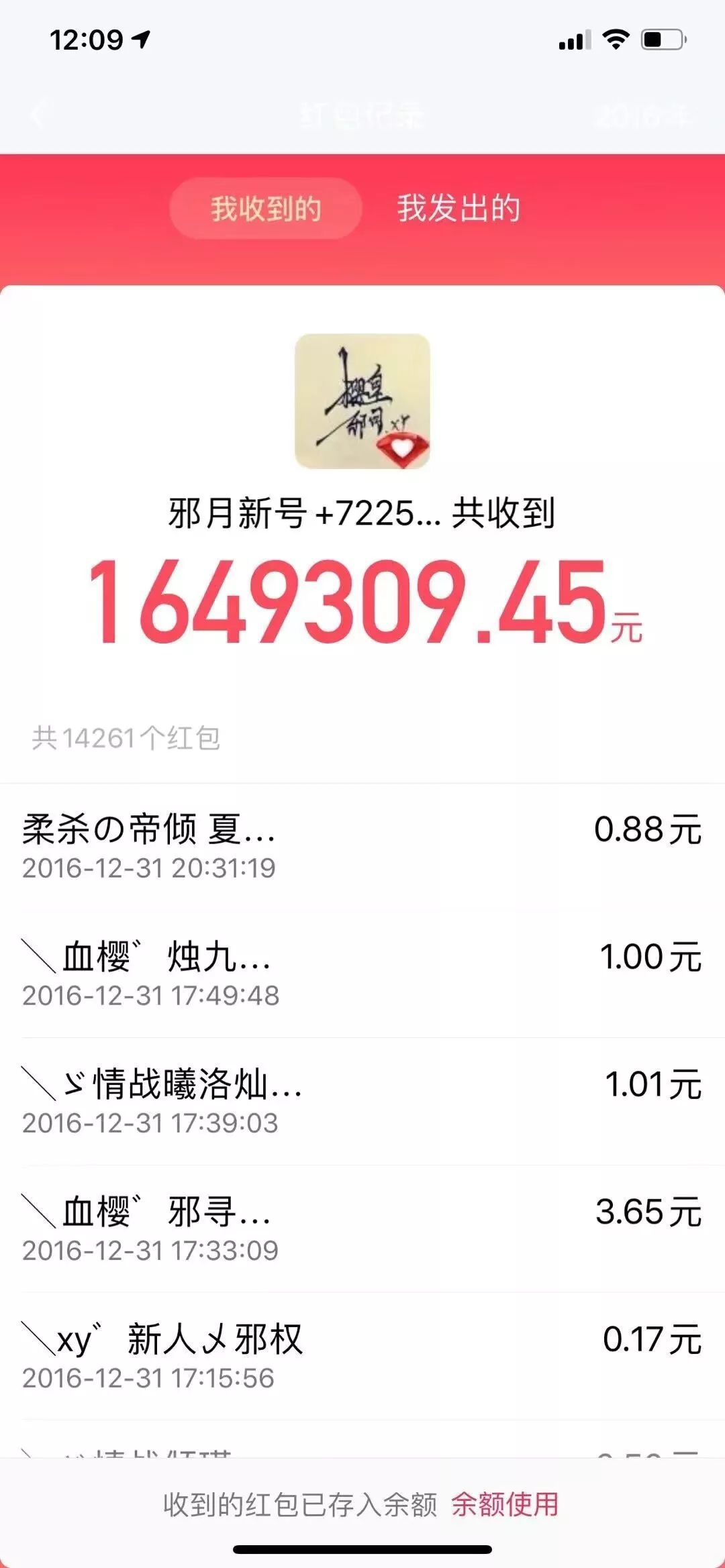 之前后台留言的老铁见到一张邪月晒在 QQ 空间的钱包截图,显示邪月在 2016 年共收到了大约 165 万元的红包。