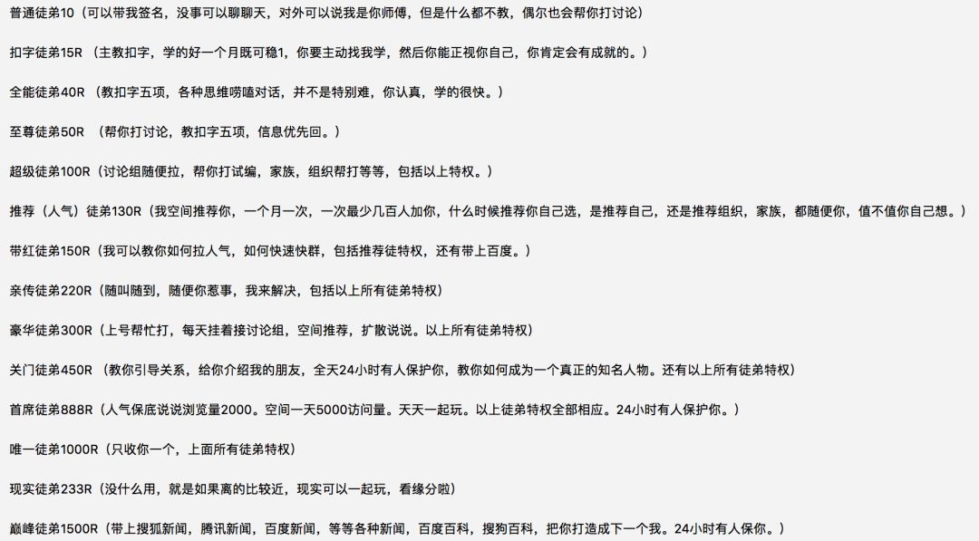 除了 40 元的收徒费有点不正常,其他的看起来也没有什么特别的嘛,哪个中二少年不是虚荣的呢~