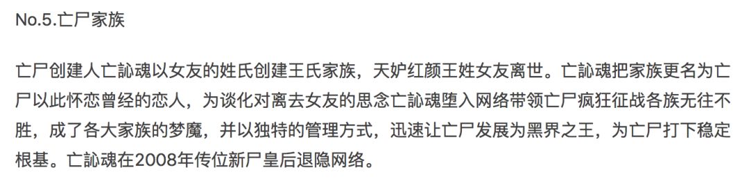 而这每个中二的族名下,还会附带一段若有其事的极简版家族往事。
