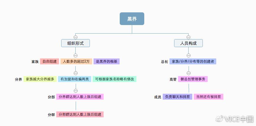 通常来说,黑界的家族由总创、高管和一般成员组成,总创和其他人素以师徒相称。