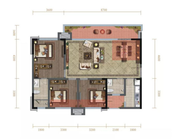 建面约105㎡三室两厅两卫