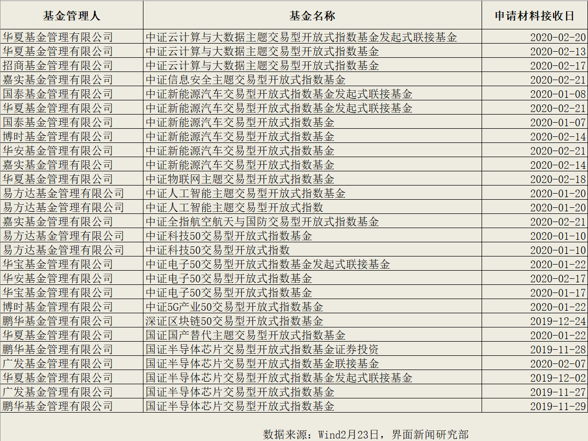 另一方面,疯狂的新发基金也提供了源源不断的子弹。以下是近三月基金公司上报的科技类指数基金: