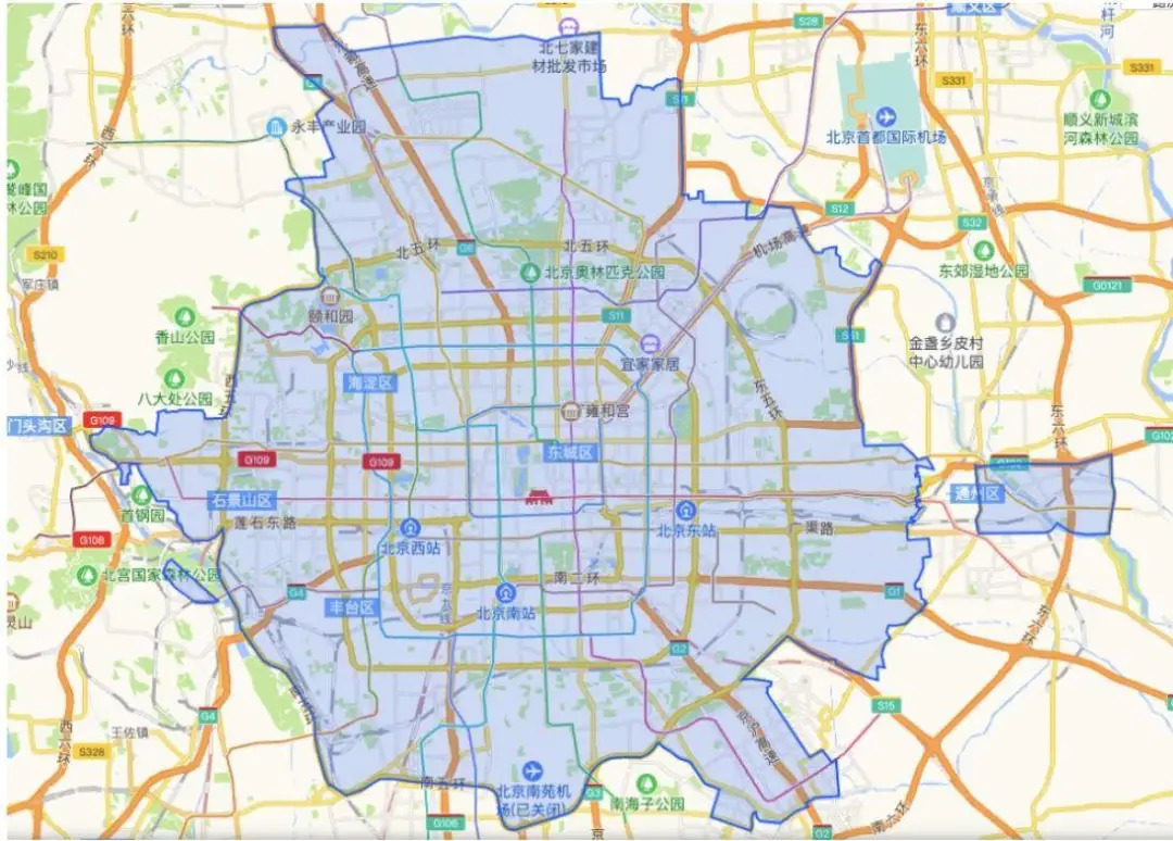 摩拜单车北京市运营范围。来源 / 摩拜单车APP