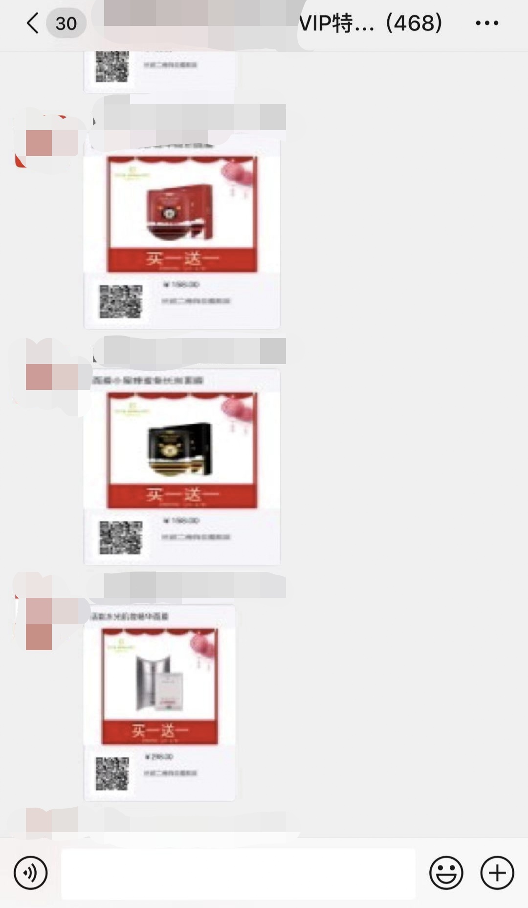令我反感的是,很多化妆品店将我拉进群之后,发了一堆清晰度、颜值不够高的图片,以及几十条甚至上百条各红各样的产品信息之后,就开始秒杀了。