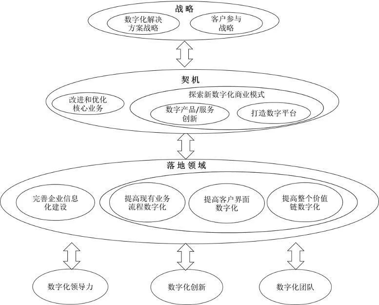 最顶层的数字化战略制定可以抽象成两个角度:第一,为客户提供数字化解决方案。这里可以是产品,可以是服务,甚至是打造企业生态。第二,客户参与战略。很难说一个企业到底该用第一个还是第二个战略,因为两者很大程度上是相交和互动的。