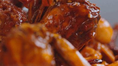 一切为二的河蟹裹上一层干淀粉,滋啦一声进了油锅就开始咕咚冒泡,蟹壳一下子通红,淀粉也变成金黄。一把捞起还不算完,直到河蟹和爆炒的葱姜蒜、香辣酱融合,整个蟹身染上辣椒的红,混合着油光,香气隔着屏幕似乎都闻得到。