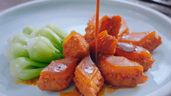 红烧肉,撒上葱花,最后淋上的汤汁是点睛之笔;