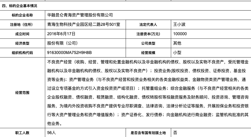 这里的青海省投资集团有限公司即是“青海省投”,2019年年初至今,青海省投深陷项目爆雷旋涡,评级暴跌,400亿债务压顶,商业银行、租赁、券商和信托相继遭到牵连。不知华融昆仑与青海省投合作究竟有多深,此次中国华融出售华融昆仑股份又是否与青海省投爆雷有直接关系。