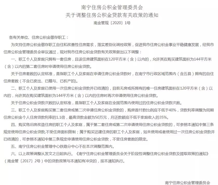 2月23日,广西南宁住房公积金管理中心网站发布《关于调整住房公积金贷款有关政策的通知》,对南宁市住房公积金贷款政策予以调整,与2017年颁布的购房政策有较大变化。
