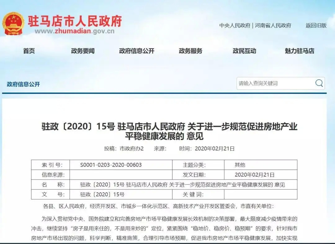 2月21日,河南驻马店市政府下发《关于进一步规范促进房地产业平稳健康发展的意见》,共发布17条举措,包括降低公积金购买首套房首付比例、提高公积金贷款额度、给予购房补贴,最大限度减少疫情带来的冲击。