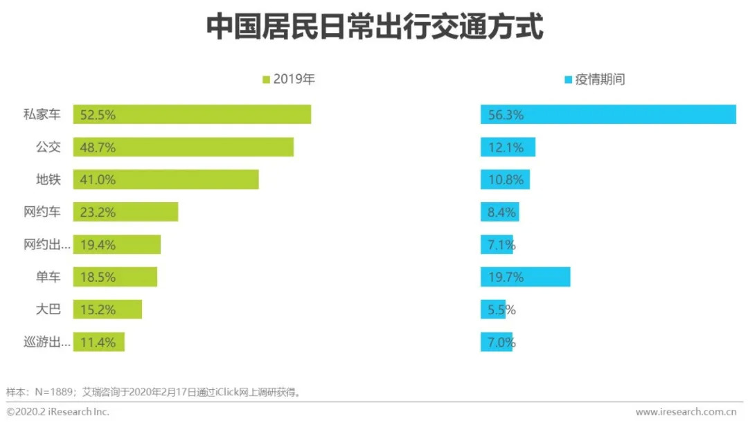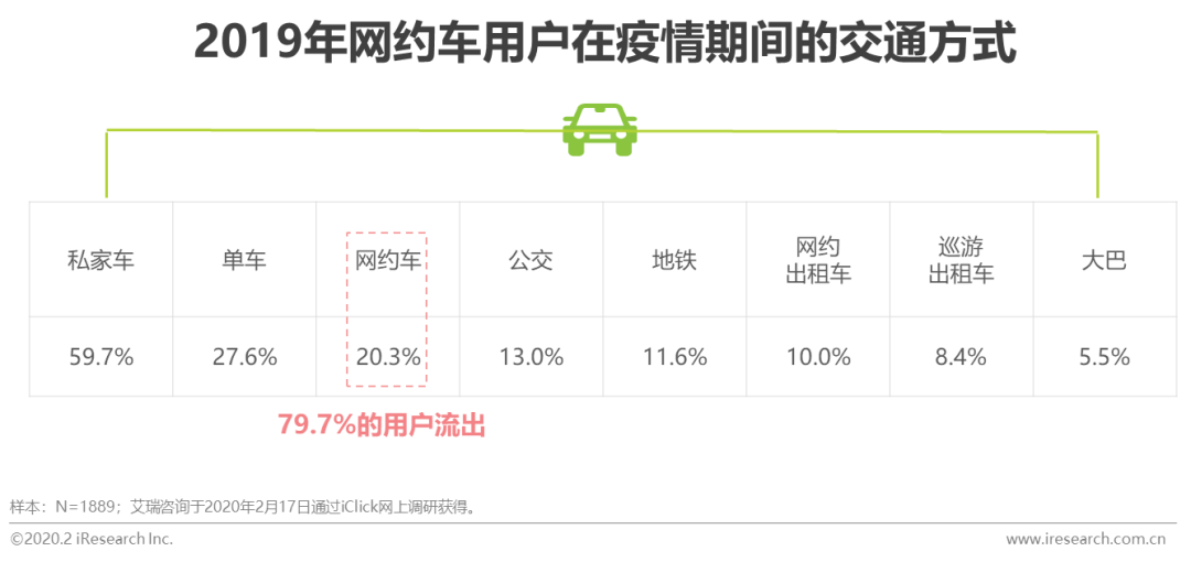 而居民出行频次降低,日常出行交通工具的使用需求也同步降低;在必要出行时,也多选择尽量避免与他人接触的私家车和自行车;其他交通方式的使用率均明显下降,甚至低于单车使用率。在日常出行会选择网约车的用户中,疫情期间仅20.3%选择了网约车,用户流出率近八成。未来一段时间,网约车仍将保持低于市场整体的发展趋势,控制用户大量流出及应对平台之间的用户重新争夺将是网约车企业在未来一段时间业务重点。