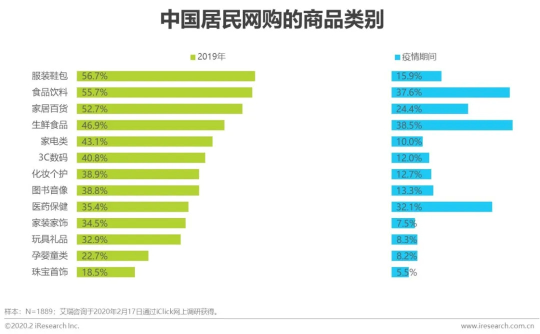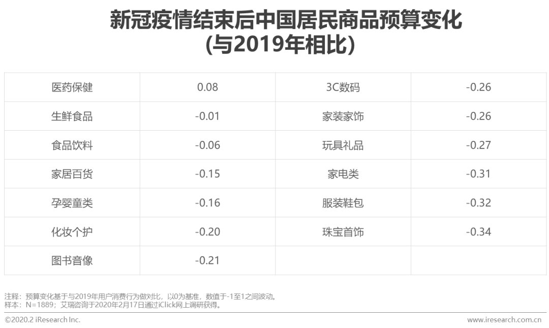 由于整体网购频次降低,用户对所有类别的商品网购率均下降,网购各细分行业或多或少都受到疫情的影响。而用户对于疫情结束之后的网购预算也持悲观预期,除医药保健外,所有类别商品的预算均将被压缩,尤其是珠宝首饰、服装鞋包、家电这类价值相对较高的非必需品;网购细分行业将面临更激烈的消费者钱包份额竞争。