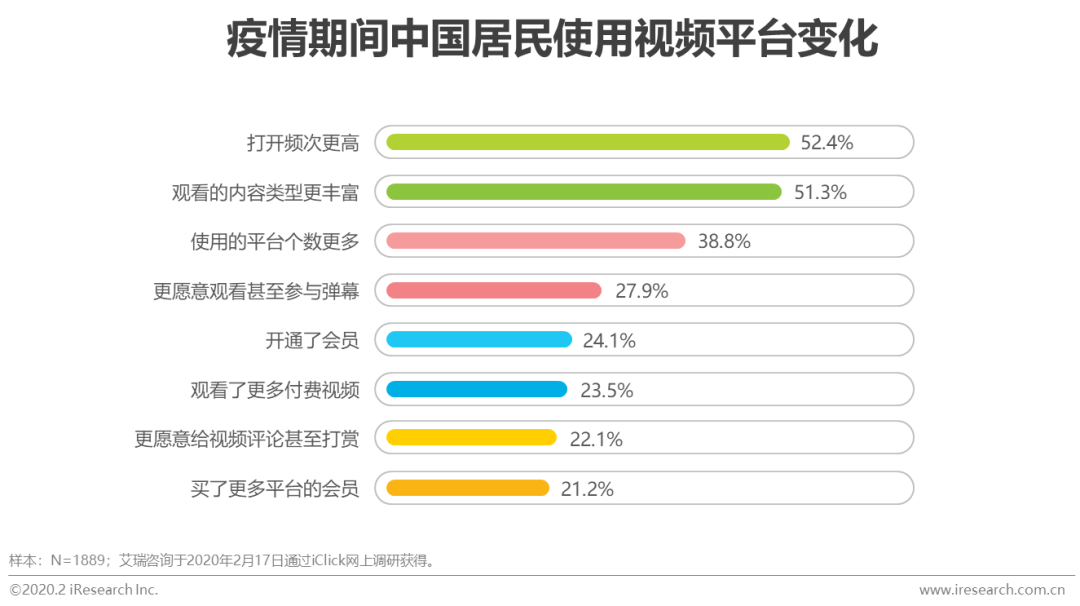 在线视频:疫情期间,用户的视频观看行为更加积极,使用粘性提高——打开频次更高且观看类型更丰富;此外,用户的付费行为也有增长。但另一方面,用户使用的平台个数变多,且在疫情之后消费趋势将会回落,如何留住新用户和保持用户高粘性是视频平台面临的运营挑战。