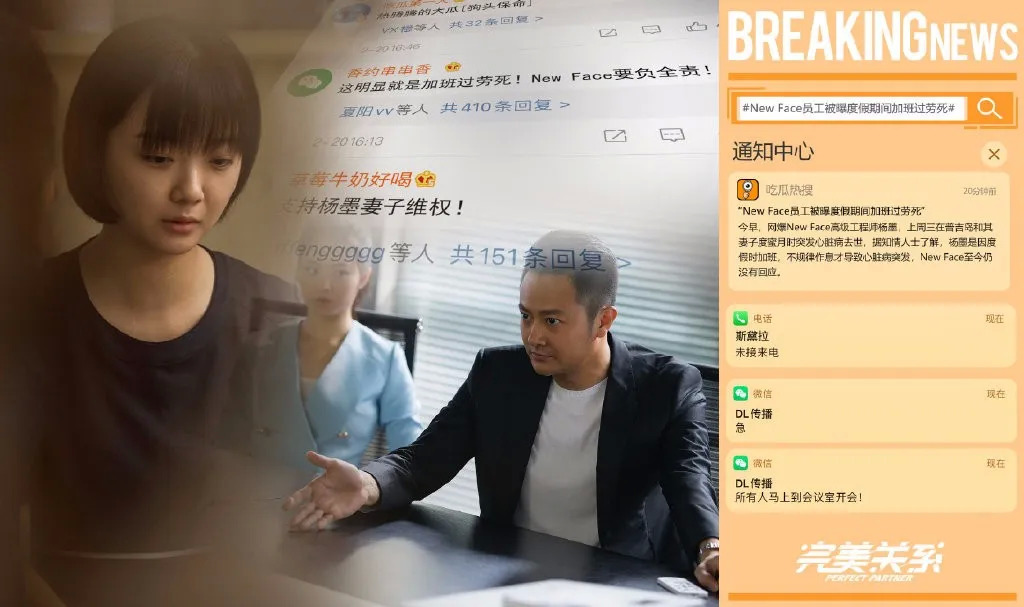 可以看到,《完美关系》试图通过“老带新、男配女”这种影视剧常见的人物关系模式,探讨公关应该如何处理好企业形象与公众舆论之间的平衡。