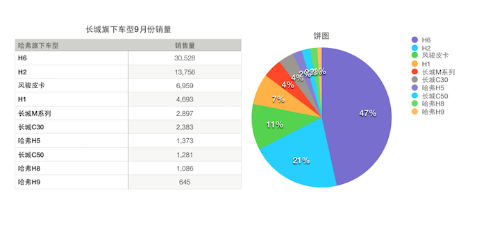 长城汽车SUV霸主的地位依然难以撼动,但轿车严重拖后腿。9月销量达到65601辆,增长3%。旗下SUV双雄表现稳定,哈弗H6销量为30528辆,同比增长逾10%,再次突破3万;紧随其后的是哈弗H2销量13756辆,同比增长逾65%,连续12个月销量过万,但轿车跌幅达到近50%,魏建军口中的“从未放弃轿车”到底要怎样实现?