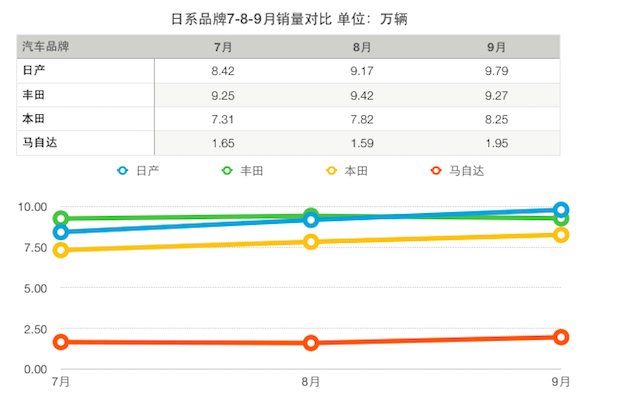 日系六大汽车厂商公布的9月在华新车销量数据没有体现出“金九银十”的价值。丰田汽车的销量仅比上年同期增长1.7%,增至92700辆,此前连续3个月维持在20%以上的增长势头急转直下。除本田以外的其他4家日系车企也表现低迷,近来在中国市场上一直表现突出的日系车企也开始丧失增长势头。