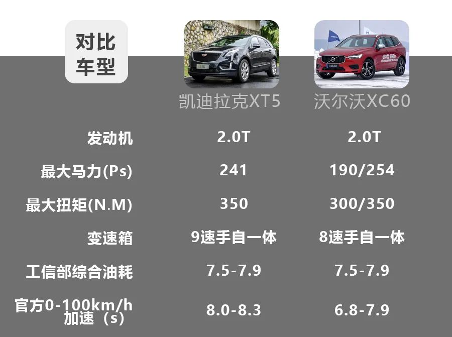 通过全方位的对比,我们可以看出:凯迪拉克XT5的外观更大气、内饰用料更扎实、乘坐舒适度更高、同价位下的舒适性配置更丰富;而沃尔沃XC60的外观更干练、内饰更简约、T5版本的动力更出色、主被动安全配置更丰富。如果是你的话,这两款车你更看好谁?