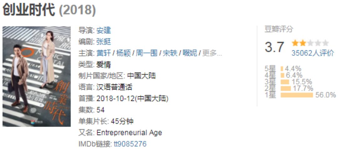 经不起推敲的细节,令《创业时代》成为国产职业剧的反面典型;离职时的浮夸演讲,标志着周一围油腻路线的开始;三角网恋的狗血剧情,让黄轩说出了那句可能会伴随他职业生涯终身的名台词。