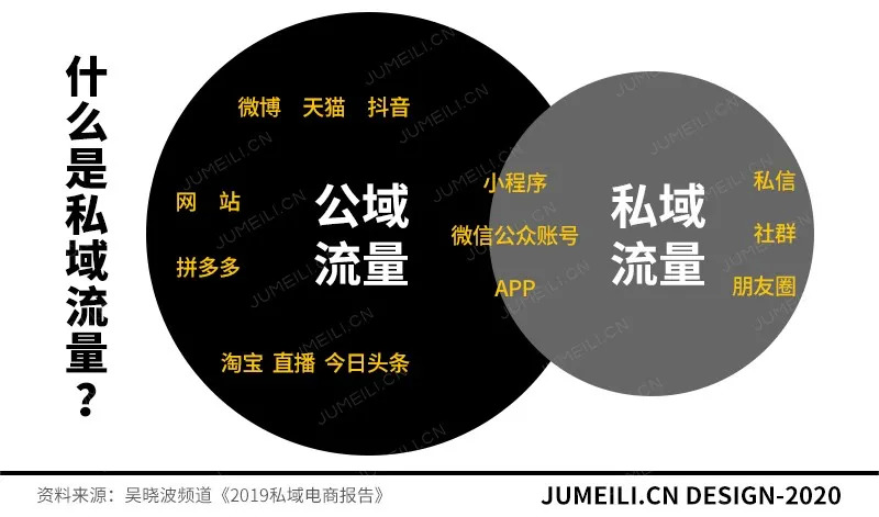 私域流量一词,目前还没有明确的定义,对此每个人的理解都不同,《2019私域电商报告》中的定义为:商户能够随时触达,进行直接沟通与管理的用户称为“私域流量”,用户主要沉淀在微信个人号、微信公众号、商家自有App、小程序。
