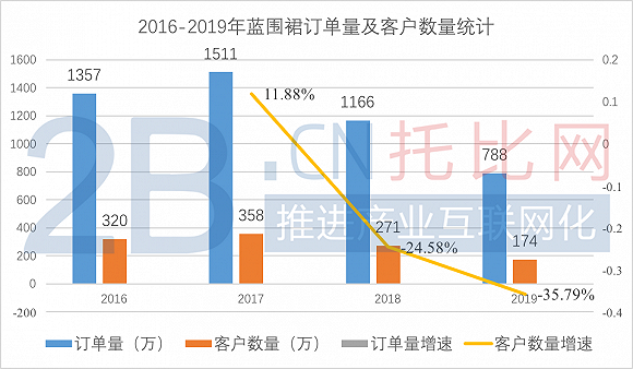 财报数据显示,2019年订单量达到788万,相比于2018年同比减少32.42%。客户数量达到174万,相比于2018年同比减少35.79%。