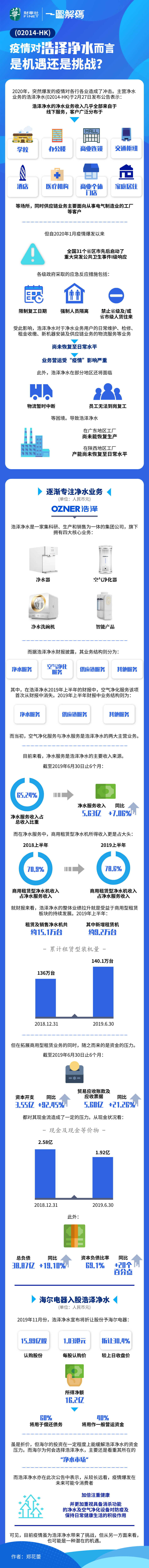 2月27日,浩泽净水(02014-HK)公布,受疫情影响,集团净水业务及供应链业务等都尚未恢复至日常水平,集团业务营运受“疫情”影响严重。