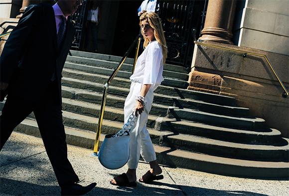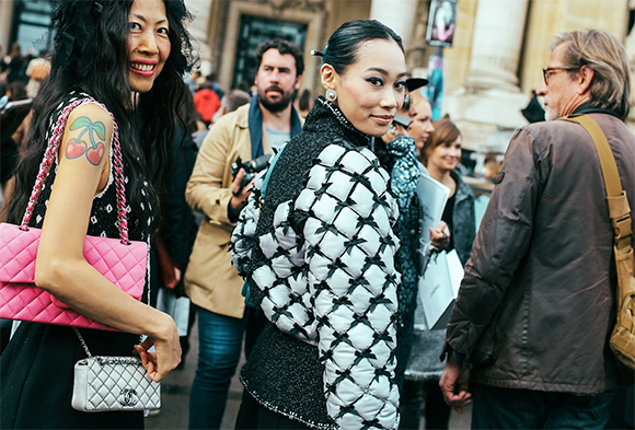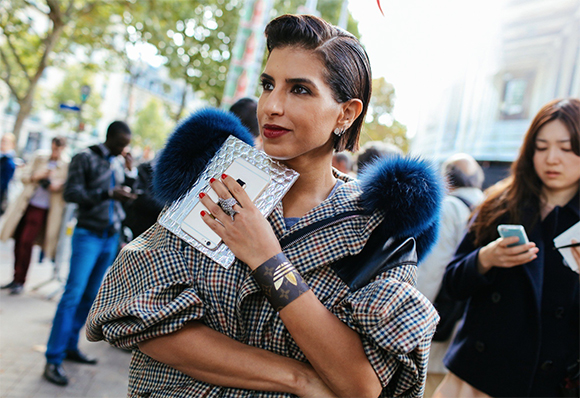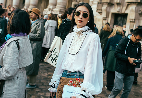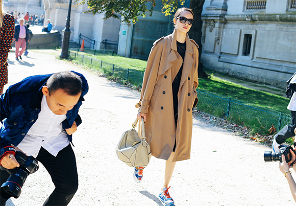混搭上衣阔腿裤的脚踝下蹬一双Celine小白鞋、Prada细框墨镜抑或一身丹宁下的Louis Vuitton短靴都可以轻松吸引到闪光灯;当然,本季热搭的配件也有多种,其中包括了定制姓名字母的最新款Coach手袋,Loewe的配饰以及万年款的Chanel菱格纹。