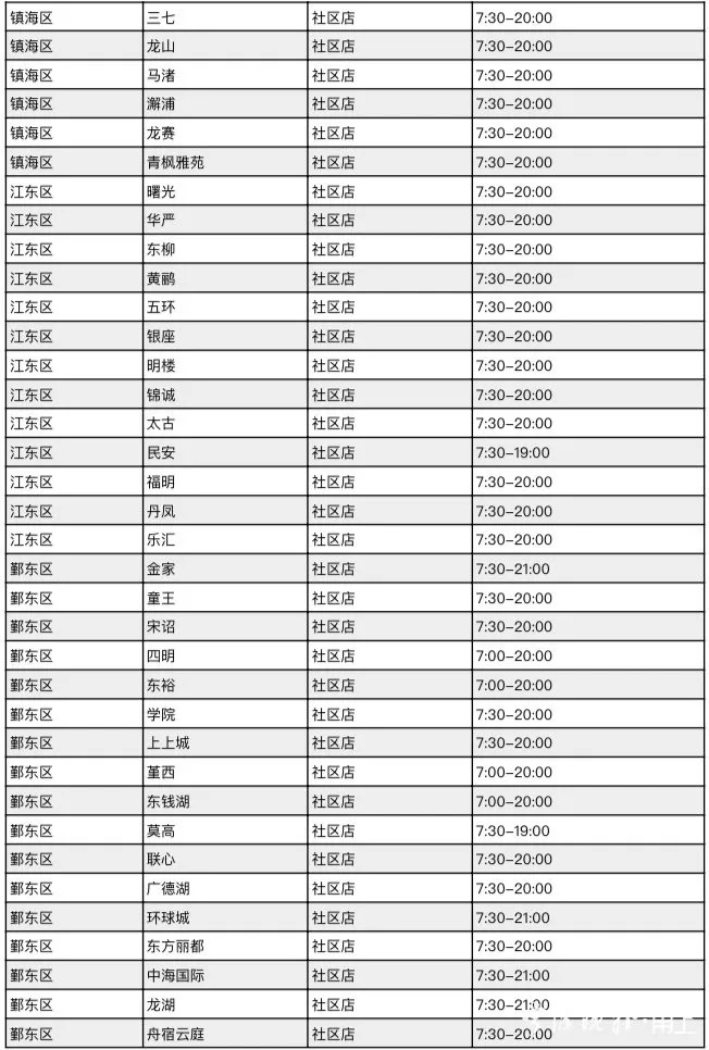 鄞州店8:00-20:00(2月27日起,恢复至6:00-22:00)